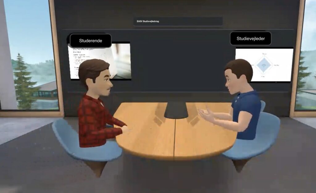 Dette projekt undersøger, om Social VR kan bruges som et alternativ til møder i Zoom og Teams, og vi fokuserer særligt på studievejledningen, som typisk er en personlig samtale mellem en studerende og en vejleder.